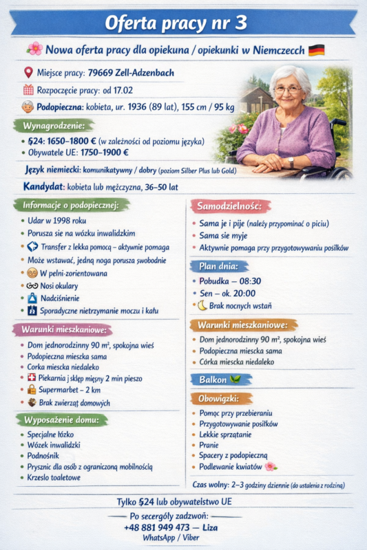 🌸 Nowa oferta pracy dla opiekuna / opiekunki w Niemczech 🇩🇪